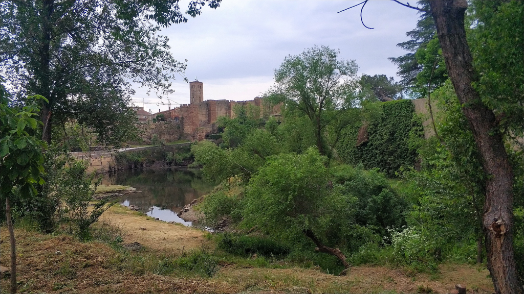 Vamos a realizar el paseo de ronda por la muralla, en un recorrido de más de 800 metros, primero por el adarve bajo o tramo que transcurre paralelo al río Lozoya, donde la muralla no excede de los 6 m de altura, 2 m de grosor y solo cuenta con una serie de contrafuertes en su flanco este, ya que el río actúa de parapeto.