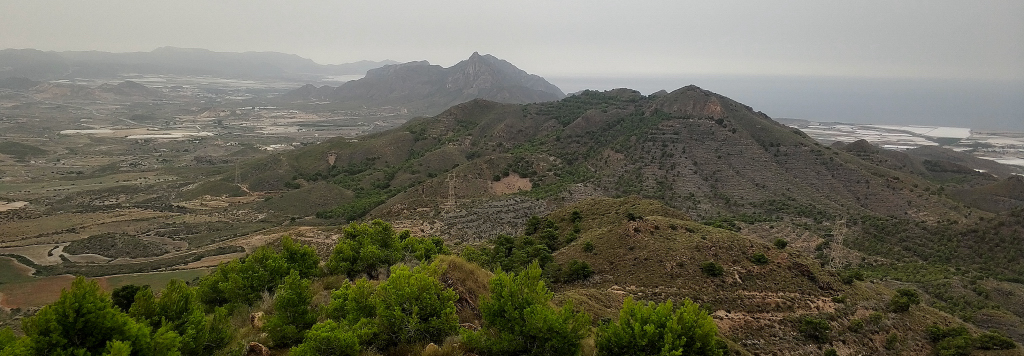 ascendemos por la carretera RM-D21, con vistas de dos mares, el natural y el de plástico.