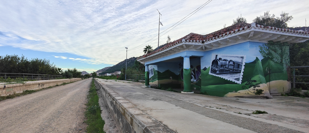 entro en la carretera hacia Alquerías, girando a la derecha sigo el trazado del AVE y luego a la izquierda por el Camino de Tabala;