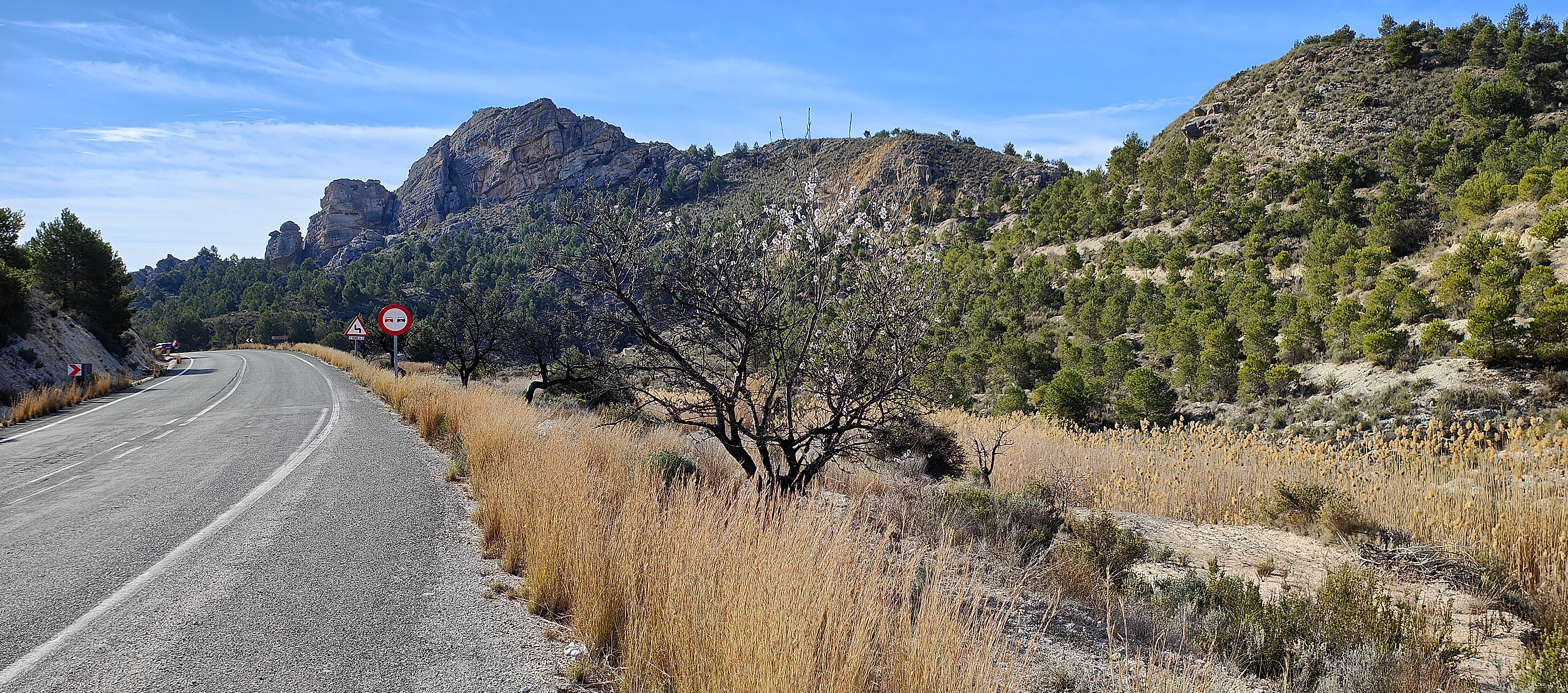 cruzamos la Rambla de Cantalar, seguimos un tramo por el arcén de la carretera poco concurrida, coincidiendo con el Camino de la Vera Cruz que une las ciudades de Granja de Rocamora, Abanilla, Ulea y Caravaca de la Cruz.