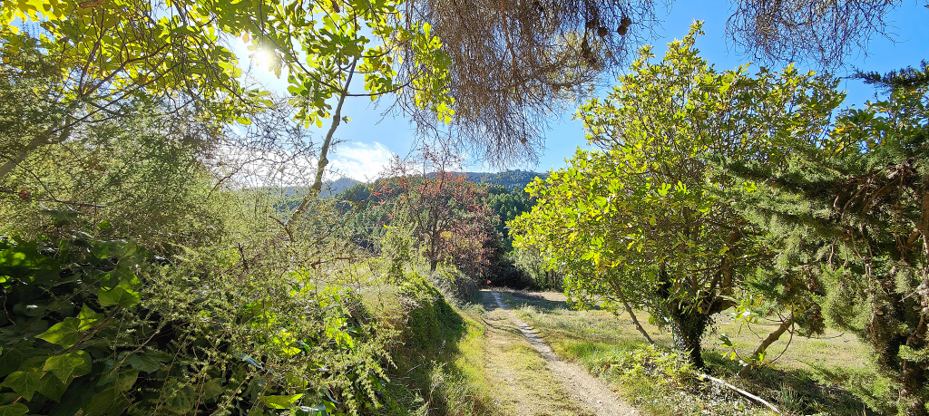 y pedaleo por el sendero paralelo a la pista que desciende al Cortijo de Los Barrancos,
