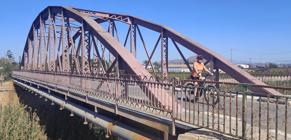 nos saca al Camino Viejo de Orihuela; tras 575 m, pasamos desde una mota a la de enfrente por puente peatonal.
