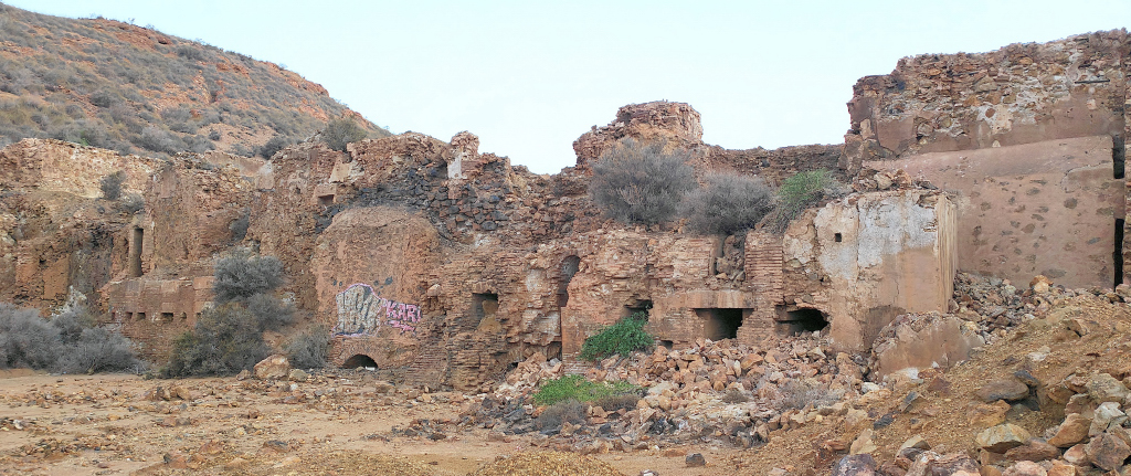 reúne una buena muestra de estructuras mineras que sueles estar dispersas; posee incluso lavaderos propios de mineral y aún se conservan los pilares que soportaban las cintas transportadoras,