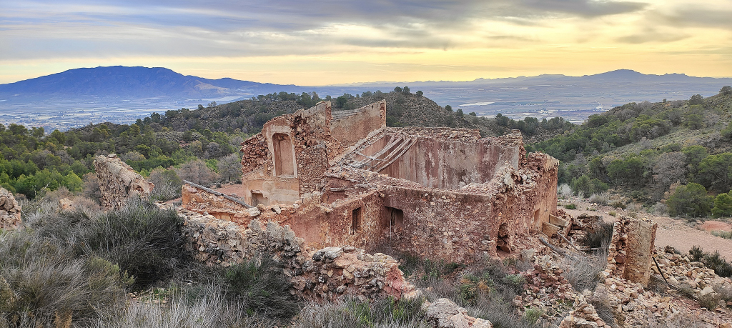 alcanzamos las ruinas de la vivienda rural de Abuznel, con grandes vistas sobre el Barranco del Amarguillo; con la creación del parque natural, se pusieron muchas restricciones para los usos agrícolas y ganaderos del suelo; la segunda mitad del siglo XX se caracterizó por una vuelta a las ciudades y el abandono de los campos.