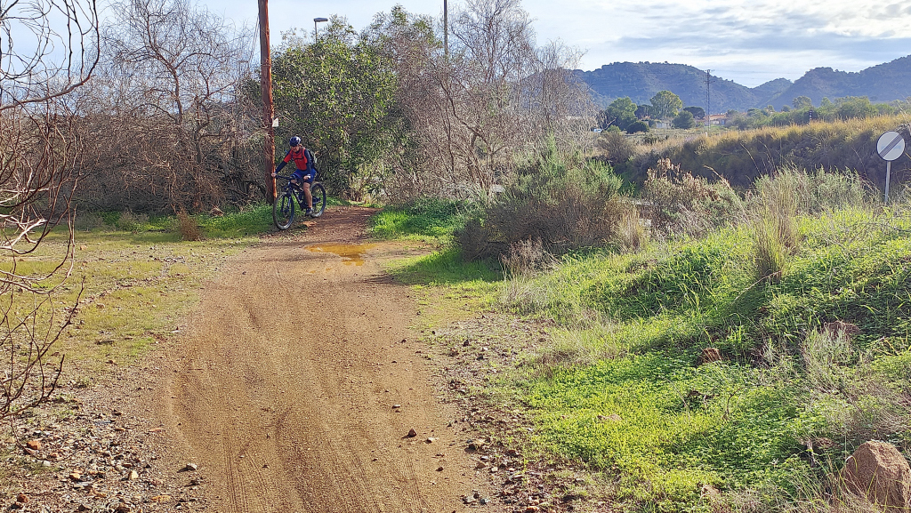 rodeando una montaña de estériles, pedaleamos paralelos a la carretera por precioso sendero