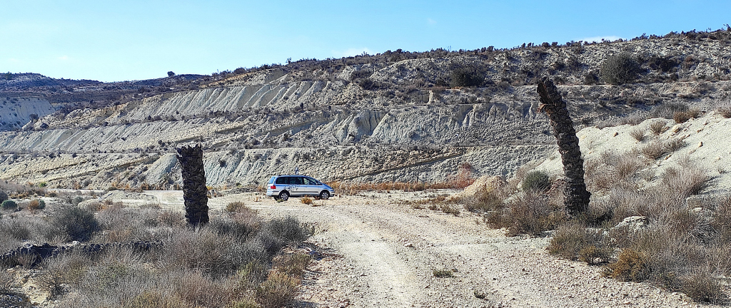 Accedo desde la RM-15, Salida 10 B-11 dirección Campos del Río; aparco pasado el puente sobre el Canal Principal de la Margen Derecha del Trasvase Tajo-Segura, a la entrada del carril hacia la fallida urbanización de Trampolín Hills, estafa inmobiliaria sobre la construcción de un complejo de de casi 2.500 viviendas de lujo, alrededor de un campo de golf en la zona de Barril de Abajo de Campos del Río.