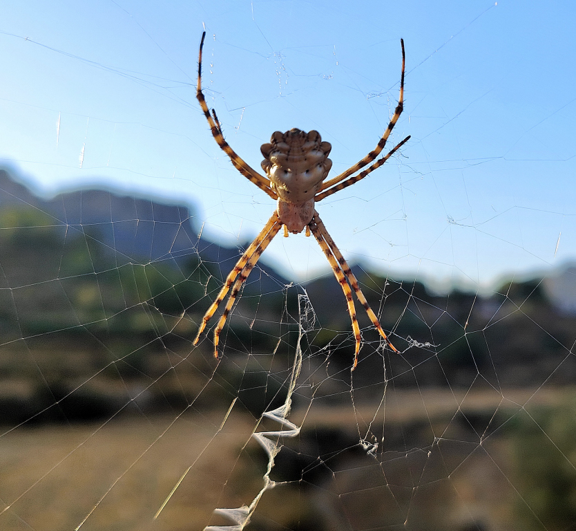 igual que las Argiope bruennichi, pero sin la mancha negra presente en la región torácica;